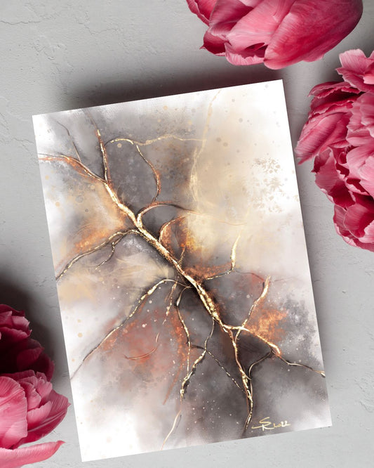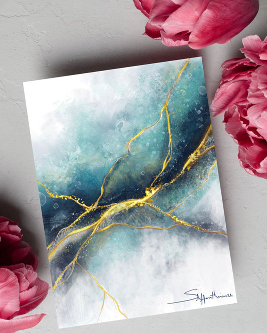 Sara's art is a real revelation. I offered a batch of cards and my favorite is "the broken heart" connected of gold ink. Gold shines ... our injuries can also shine. Thank you Sara, I highly recommend! " L.K