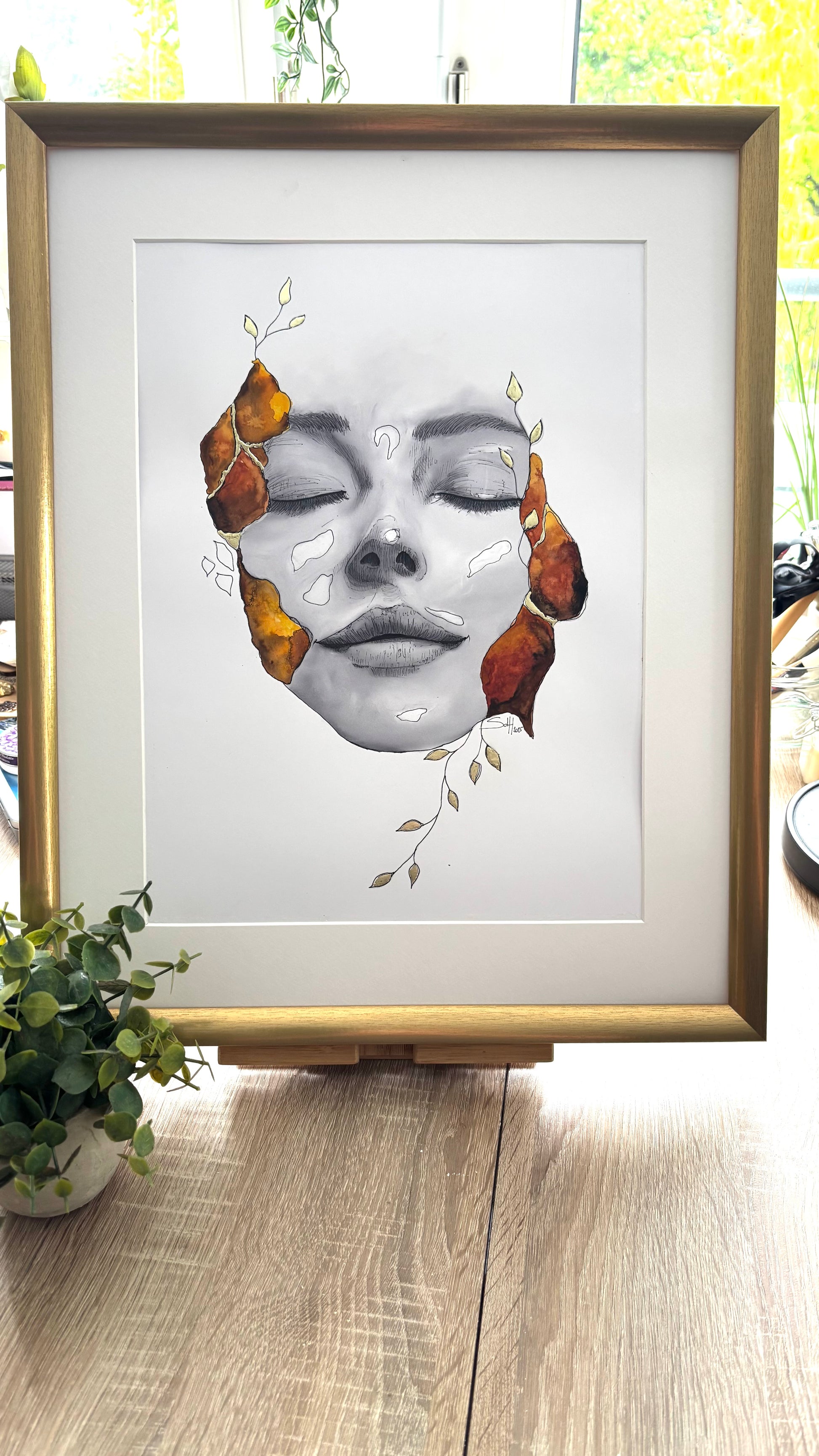 - Framed : The work is carefully attached to a white passepartout to highlight its presentation. The golden frame (40x50 cm) can be changed according to your preferences.
