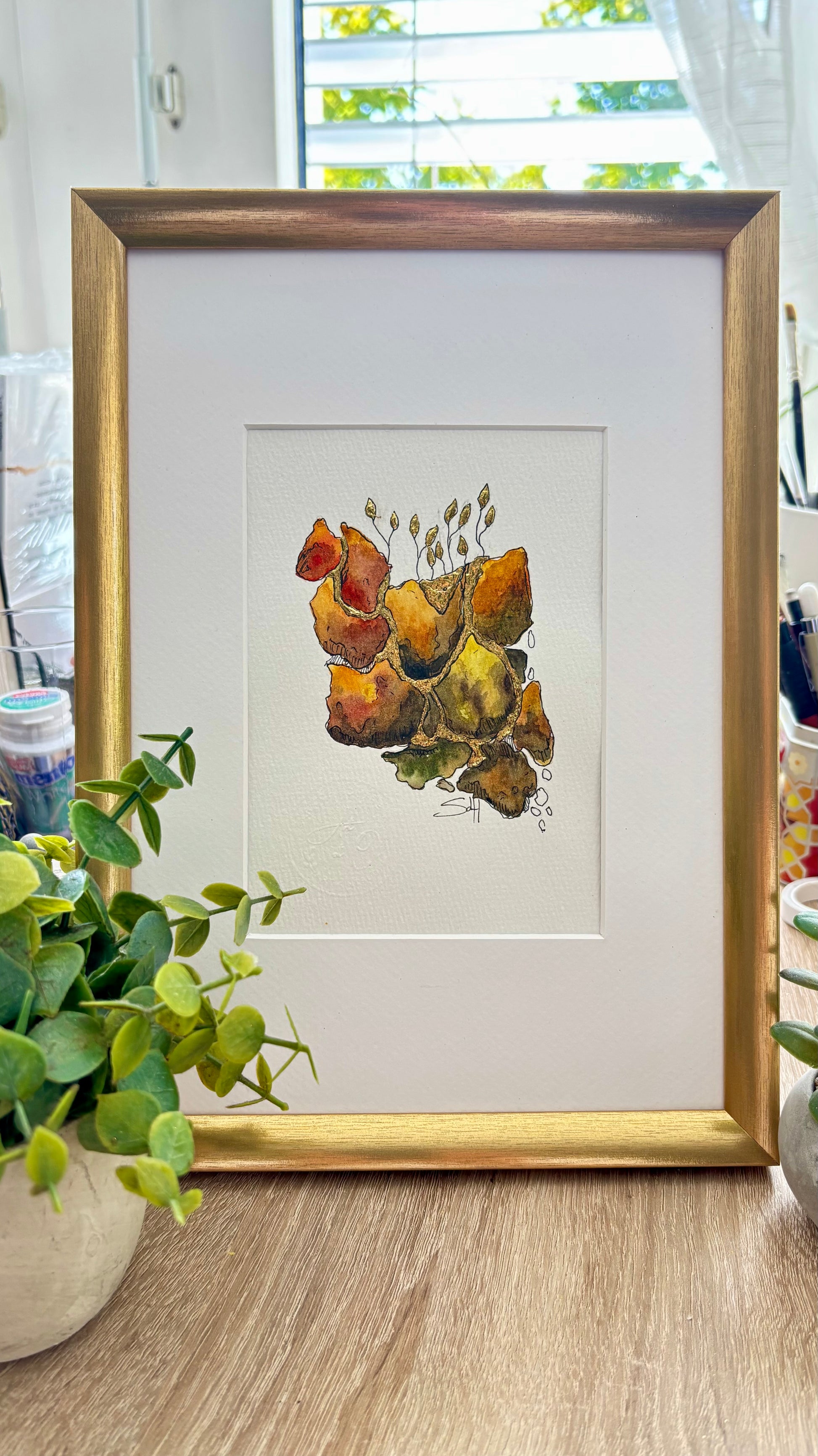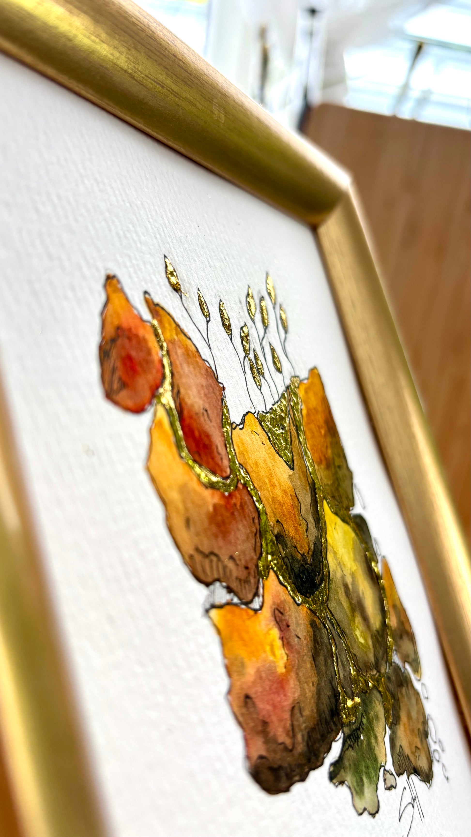 🌱 Fertile - Original table in watercolor, ink and imitation gold leaf