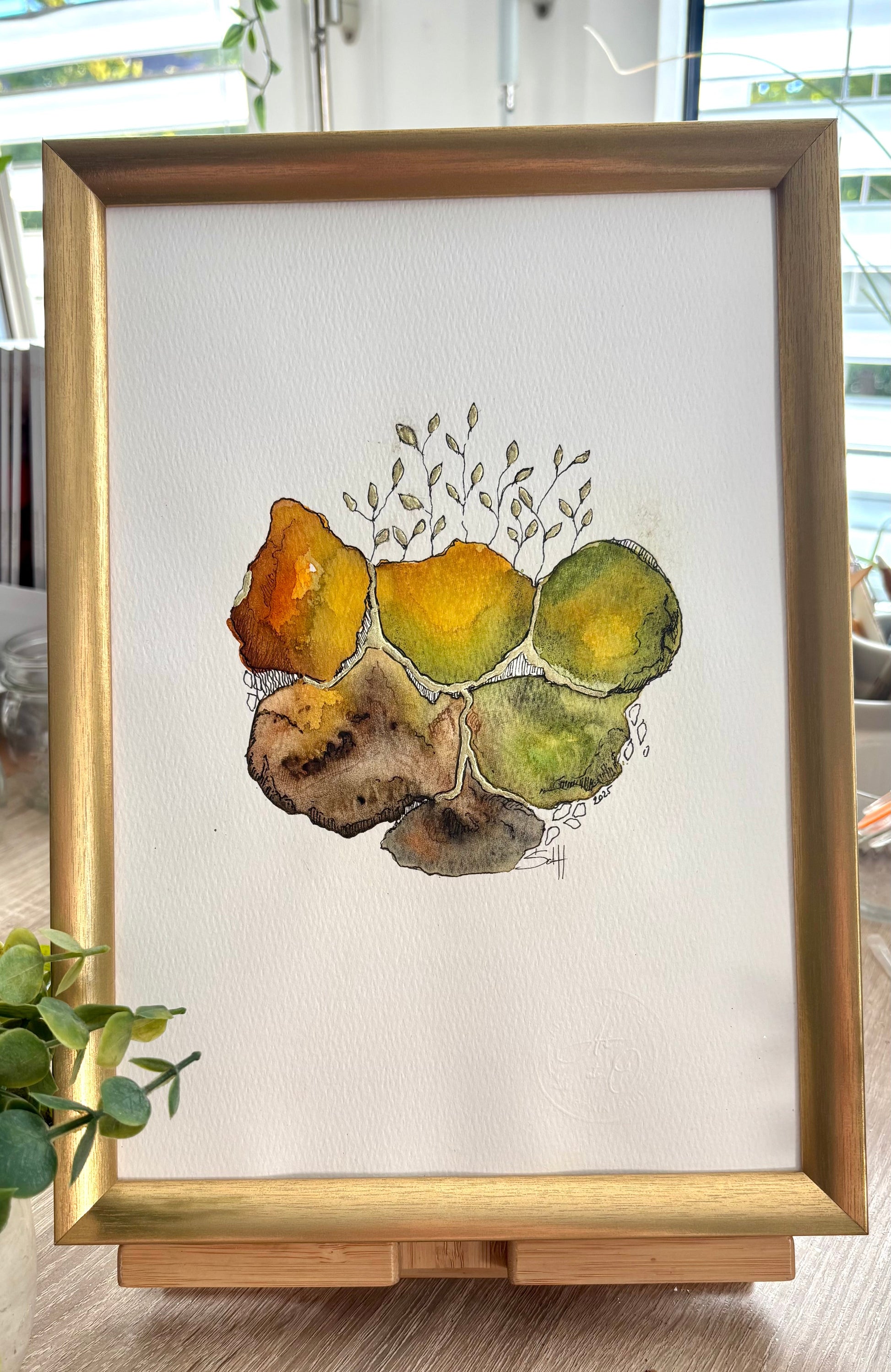 🌱 Germ of life - Original table in watercolor, ink and gold leaf